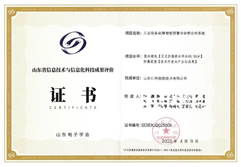 近日,由山東(dong)電(dian)子學會(hui)組(zu)織的“工(gong)業設備故障智能預警與診斷分(fen)析系(xi)統” 科研成果評價會(hui)在我公司(si)順利召開。評價專家(jia)委員(yuan)會(hui)聽取了(le)(le)我公司(si)匯報(bao),審閱了(le)(le)相關資料,觀(guan)看(kan)了(le)(le)系(xi)統演示,經質詢(xun)和討(tao)論,評價專家(jia)一致認(ren)為(wei),該項目達到 國內(nei)領先水平。