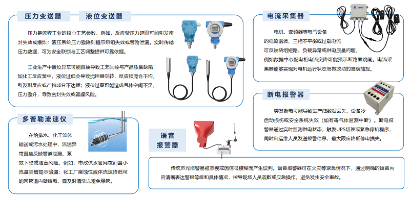 由于單一物理場的分(fen)析無(wu)法(fa)準(zhun)確捕(bu)捉(zhuo)早期(qi)故障特征,如:電機(ji)、泵機(ji)等旋(xuan)轉設備在過載、軸承磨(mo)損(sun)或機(ji)械失衡前,會伴隨多個(ge)早期(qi)故障特征,而單一的要素監測有可能恰(qia)好錯過,從而因預警(jing)不及時(shi)導致(zhi)異常未能及時(shi)處理引發(fa)設備停機(ji)甚至傳動系統損(sun)毀(hui);化(hua)工廠蒸汽(qi)管道局部(bu)溫度驟升有可能預示保溫層破損(sun)等。