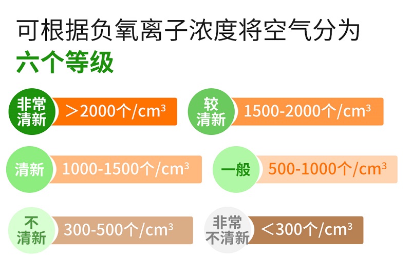 負(fu)氧(yang)離(li)(li)子是(shi)帶有負(fu)電荷的氧(yang)原子,可以與空(kong)(kong)氣(qi)(qi)中(zhong)的有害物質如塵埃、病(bing)菌、煙霧等(deng)結(jie)合,使其沉降或中(zhong)和(he),從而凈化空(kong)(kong)氣(qi)(qi)、增(zeng)加氧(yang)氣(qi)(qi)含量,被人(ren)們稱為 “空(kong)(kong)氣(qi)(qi)維生(sheng)素”或“空(kong)(kong)氣(qi)(qi)清潔劑”。它(ta)也是(shi)衡量空(kong)(kong)氣(qi)(qi)質量好(hao)壞的標志之(zhi)一(yi),世界衛生(sheng)組織對清新(xin)空(kong)(kong)氣(qi)(qi)的負(fu)離(li)(li)子標準濃度也進行了相關規(gui)定。