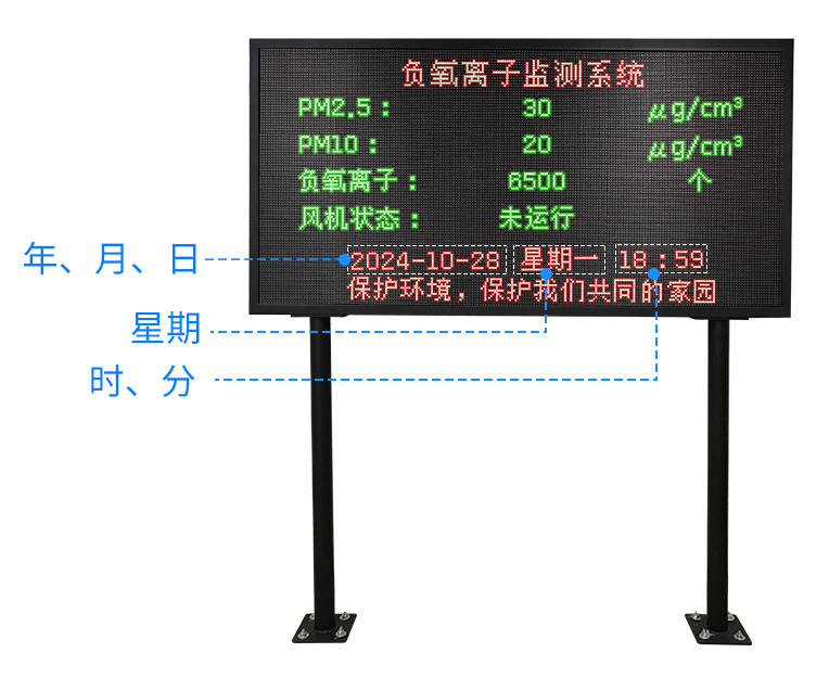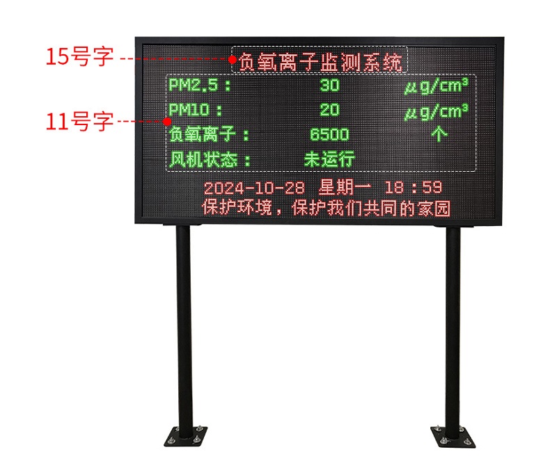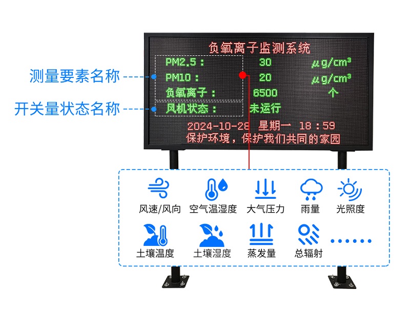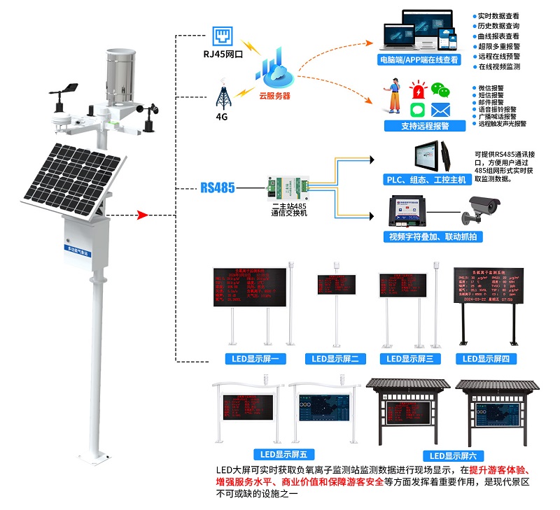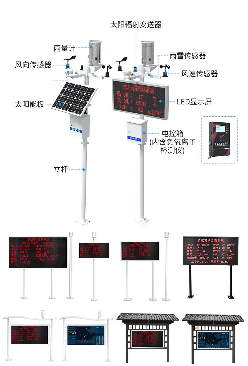 負(fu)氧離子(zi)(zi)監測站(zhan)由“負(fu)氧離子(zi)(zi)檢(jian)測儀、數(shu)據采集主(zhu)機、安裝防(fang)護支(zhi)架、太(tai)陽(yang)能供電系統、LED顯示(shi)大屏”等部件組成(cheng)。