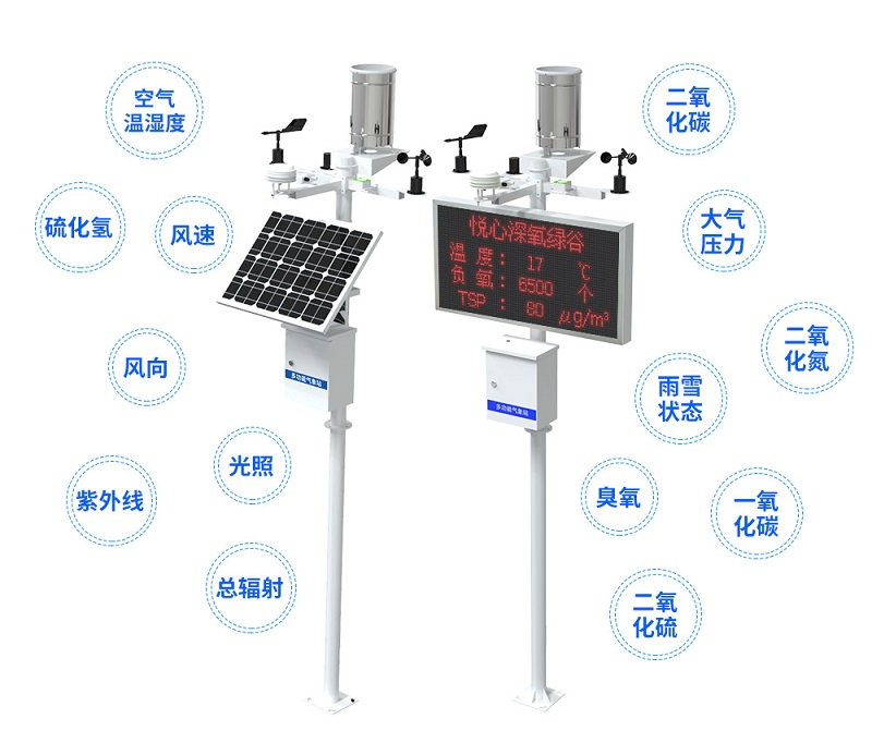由于戶(hu)外環(huan)境(jing)復雜多(duo)變(bian),負氧(yang)(yang)離(li)(li)子(zi)的(de)含(han)量(liang)也會受天氣(qi)變(bian)化(hua)(hua)(hua)影(ying)響,單一(yi)的(de)負氧(yang)(yang)離(li)(li)子(zi)監(jian)測(ce)(ce)可能無法滿(man)足環(huan)境(jing)監(jian)測(ce)(ce)需(xu)求(qiu),因此,負氧(yang)(yang)離(li)(li)子(zi)監(jian)測(ce)(ce)站采用(yong)了“多(duo)源(yuan)融(rong)合”的(de)技術思路,用(yong)戶(hu)可依據項目的(de)實際需(xu)求(qiu),同時拓展(zhan)各種氣(qi)象傳感器(qi),實現空(kong)氣(qi)溫濕度、風速、風向、二氧(yang)(yang)化(hua)(hua)(hua)碳、大氣(qi)壓力(li)、光照、雨雪狀(zhuang)態、紫外線、總輻射、一(yi)氧(yang)(yang)化(hua)(hua)(hua)碳、臭氧(yang)(yang)、二氧(yang)(yang)化(hua)(hua)(hua)氮、二氧(yang)(yang)化(hua)(hua)(hua)硫、硫化(hua)(hua)(hua)氫等多(duo)種氣(qi)象實時監(jian)測(ce)(ce)。