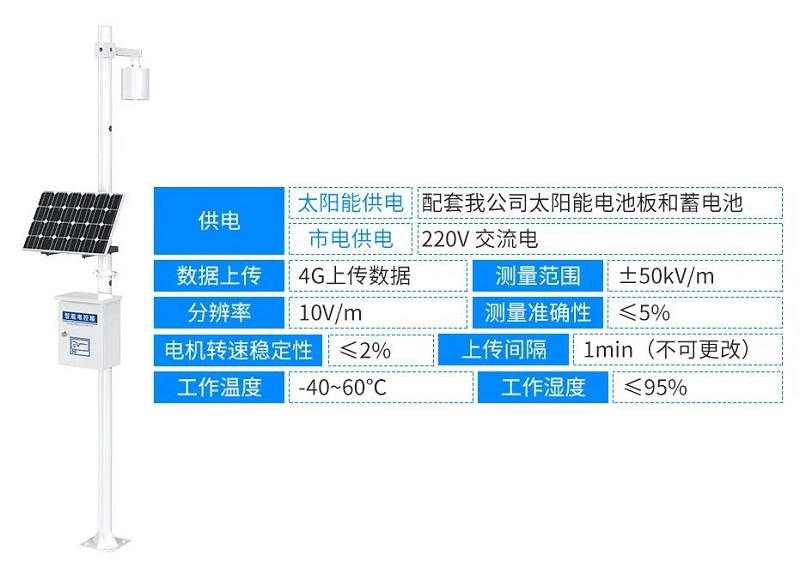 雷電預警在線(xian)監測(ce)站主要(yao)是由大氣電場儀(yi)、防腐立桿、高防護電控箱、太陽能供電系統(tong)組(zu)成。