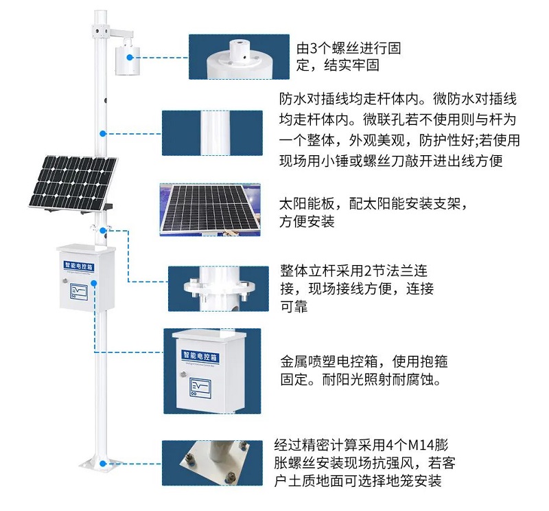 ③ 雷電(dian)預警在線(xian)監測站采用的防腐立桿和金屬電(dian)控箱均經(jing)過特殊處(chu)理,能夠耐受強光照射和各種腐蝕(shi)環境(jing),為設備的長期穩定運行提供了有(you)力保障。
