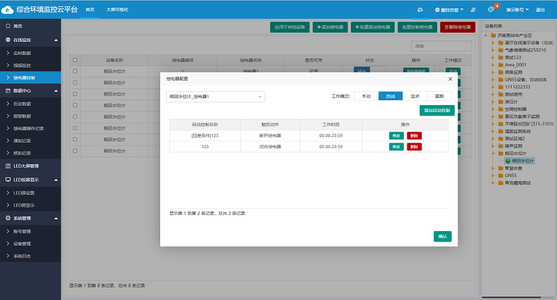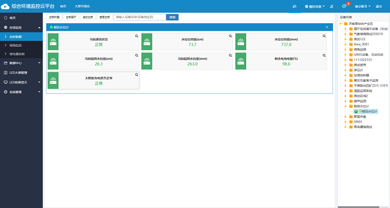 稻田水(shui)位(wei)計可以(yi)將(jiang)數(shu)據上傳(chuan)至我公司的多款云平(ping)(ping)臺(綜合(he)(he)環境監(jian)控云平(ping)(ping)臺/農(nong)業四(si)情測報(bao)平(ping)(ping)臺/綜合(he)(he)環境預警測報(bao)平(ping)(ping)臺),幫助(zhu)用戶實現(xian)24小(xiao)時無人值守(shou)的水(shui)位(wei)監(jian)控。云平(ping)(ping)臺擁有多種功(gong)能,用戶可以(yi)通(tong)過電腦/手機登(deng)錄(lu),隨(sui)時隨(sui)地查看水(shui)位(wei)變化,控制閘(zha)門設(she)備(bei)。