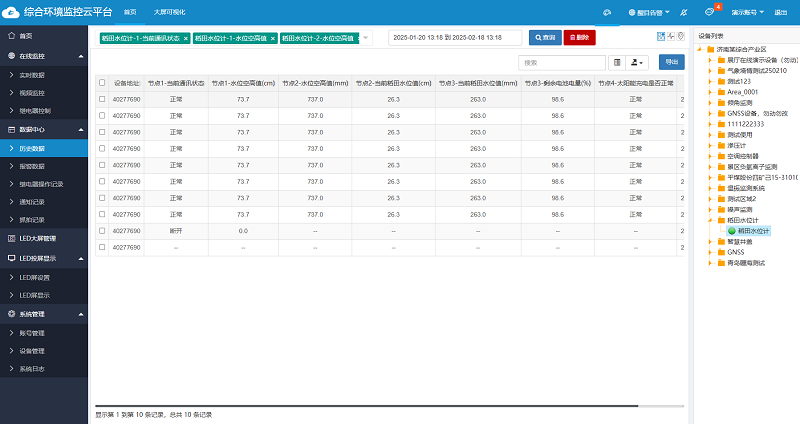 實(shi)時(shi)數(shu)據(ju)查看(kan):用(yong)戶可以隨(sui)時(shi)隨(sui)地在(zai)云平(ping)臺查看(kan)稻(dao)田(tian)水(shui)位(wei)計監(jian)測到的各(ge)種數(shu)據(ju),實(shi)現24小時(shi)遠程監(jian)管(guan)。