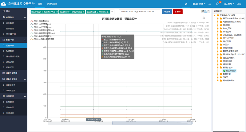 ②稻(dao)(dao)田水(shui)位(wei)異常(chang)是(shi)稻(dao)(dao)飛(fei)虱、紋枯病等病蟲害(hai)暴發的(de)前(qian)兆,傳統人工(gong)測量誤差常(chang)超(chao)±5厘米,難以察覺初期(qi)問題,稻(dao)(dao)田水(shui)位(wei)計±1mm的(de)高精(jing)度監測可(ke)精(jing)準識別田間區(qu)域性(xing)淺層積水(shui),再結合設備的(de)坐(zuo)標位(wei)置,可(ke)以讓用戶快速鎖(suo)定(ding)高風險(xian)田塊,搶在蟲卵孵化前(qian)排水(shui)曬(shai)田,降低農(nong)藥(yao)使(shi)用頻率。