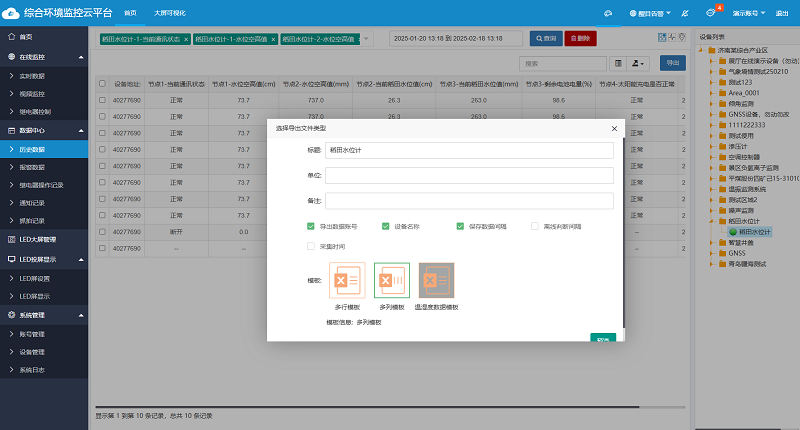 歷(li)史數據(ju)查詢(xun):云(yun)平臺(tai)會根(gen)據(ju)用戶(hu)自定義的(de)存儲間(jian)隔自動記錄歷(li)史數據(ju),用戶(hu)可以(yi)以(yi)表格(ge)/曲線的(de)方式查看/導出不同(tong)時間(jian)段的(de)監測數據(ju),掌握歷(li)史變化(hua)趨勢(shi),以(yi)便及時采取(qu)措(cuo)施。