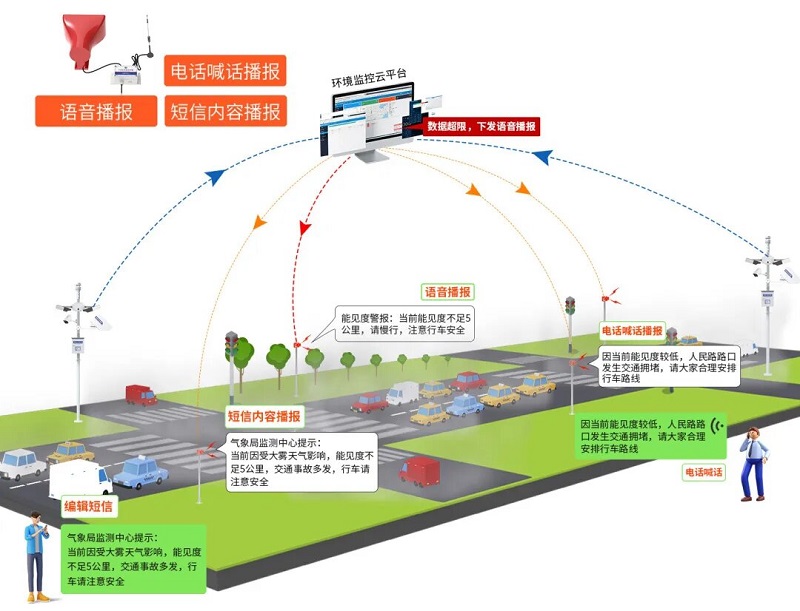 當(dang)遇(yu)到能見度過低、路(lu)(lu)面濕(shi)滑(hua)、降雨等情況時,云平(ping)臺(tai)還會根據(ju)公路(lu)(lu)交通(tong)氣象站(zhan)監測(ce)到的信息(xi),自動(dong)推送限速提(ti)示至道路(lu)(lu)兩(liang)邊電子路(lu)(lu)牌(pai)、廣播等方式,引導駕駛員規避風險路(lu)(lu)段(duan)。