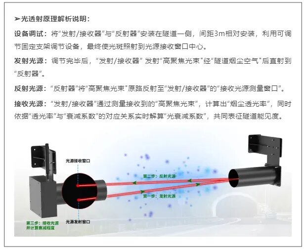 交(jiao)管(guan)部門(men)可根據COVI隧(sui)道(dao)(dao)能(neng)見度檢測儀監測到的隧(sui)道(dao)(dao)能(neng)見度數(shu)據,依據《公路隧(sui)道(dao)(dao)通風(feng)設計細則》及時為隧(sui)道(dao)(dao)通風(feng),以(yi)便更快的降低衰減系(xi)數(shu),保障空氣流通,保護(hu)車(che)輛、行人(ren)及隧(sui)道(dao)(dao)工作(zuo)人(ren)員的安全。