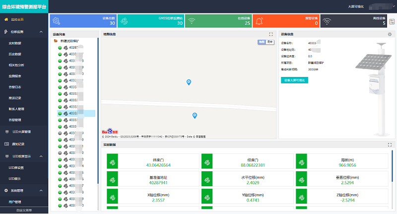 搭配我公司自主研發設計的GNSS監(jian)測(ce)云平(ping)臺(tai),用戶(hu)還可以在(zai)平(ping)臺(tai)上查看紅橙黃藍四(si)級預警,曲線圖、矢(shi)量圖、散點圖分析,導(dao)出監(jian)測(ce)報表等,完全符(fu)合地質災害GNSS位(wei)移(yi)監(jian)測(ce)預警精(jing)度(du)要求。