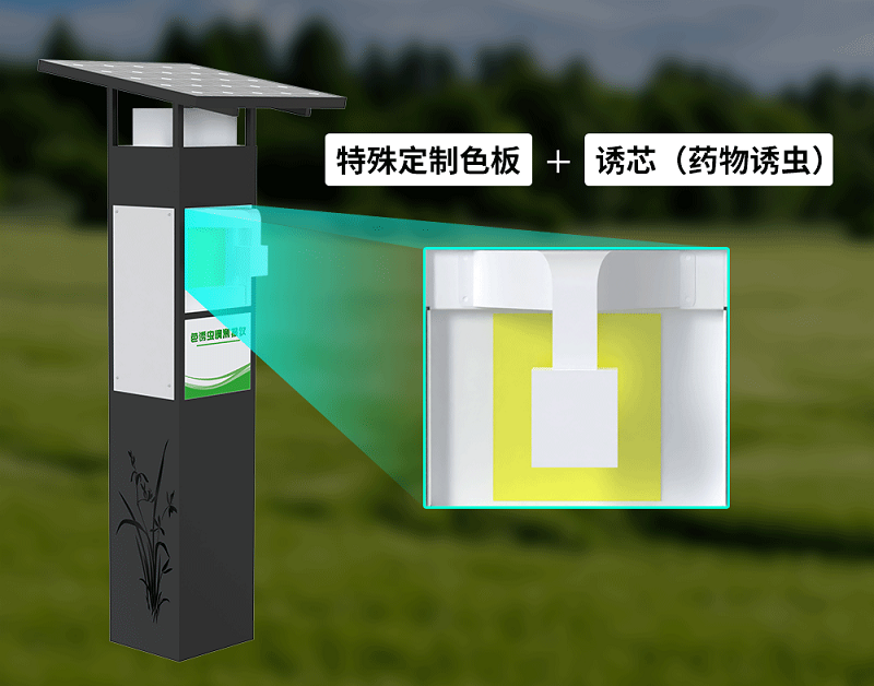 傳統色(se)(se)誘設備(bei)依賴(lai)通(tong)用色(se)(se)譜,難(nan)以應(ying)對不(bu)同害蟲(chong)對光(guang)(guang)波敏感度的細微(wei)差異,色(se)(se)誘蟲(chong)情測報(bao)儀可 精(jing)準匹(pi)配目標昆蟲(chong)的視覺偏好,且擁有(you)“特殊定制色(se)(se)板(ban)+誘芯(藥(yao)物誘蟲(chong))”雙重保障,保證了(le)誘蟲(chong)效率(lv),采用納米涂(tu)層技術調控色(se)(se)板(ban)表面反射率(lv),增強特定波長光(guang)(guang)的散射強度。