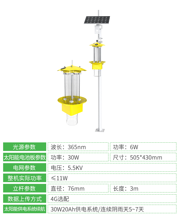 高(gao)(gao)空(kong)測報燈(deng)采用強光源(如金(jin)屬鹵(lu)素燈(deng))光源投射高(gao)(gao)度最高(gao)(gao)可達1200米,可有效吸引高(gao)(gao)空(kong)遷飛害(hai)蟲(chong),完美解決了普通蟲(chong)情燈(deng)其難以覆蓋其遷飛路徑,僅(jin)能(neng)捕捉低空(kong)活動的(de)(de)害(hai)蟲(chong),導致預警滯(zhi)后,防控被動的(de)(de)困難。