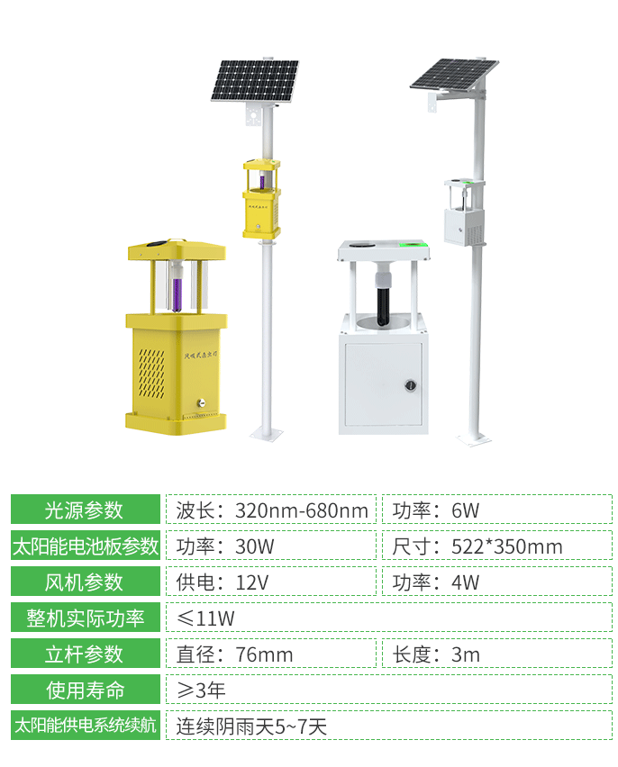 經濟實惠,可大(da)范圍(wei)鋪(pu)設(she)(隔幾米(mi)/幾十米(mi)安裝一個),不僅可以用(yong)于(yu)農業、林業還(huan)可以用(yong)于(yu)魚(yu)塘養殖、倉(cang)庫存(cun)儲(chu)、日常庭院捕蟲(chong)等害蟲(chong)種(zhong)類多場景(jing),防止害蟲(chong)泛濫或(huo)傳播疾(ji)病,保護人們經濟財產安全(quan)。