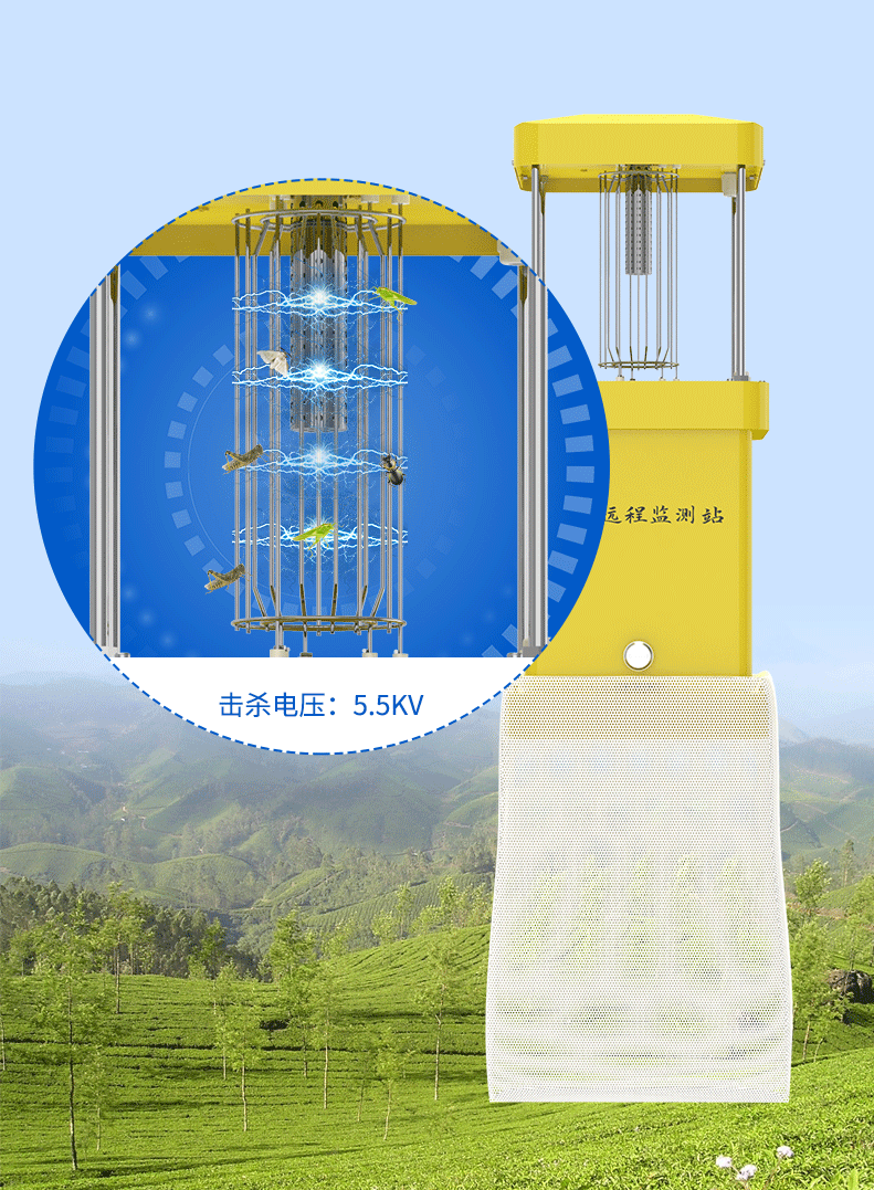害蟲(chong)(chong)遠程監測站(zhan)采用圓形高壓電(dian)網(wang)對蟲(chong)(chong)體(ti)進(jin)行擊(ji)(ji)殺,高壓電(dian)網(wang)固定方式為上端單獨固定,下端懸空(kong),保證擊(ji)(ji)殺的蟲(chong)(chong)體(ti)不會在(zai)絲網(wang)下面堆積,且內置大功率風扇(shan),可防止電(dian)擊(ji)(ji)暈的害蟲(chong)(chong)逃逸。