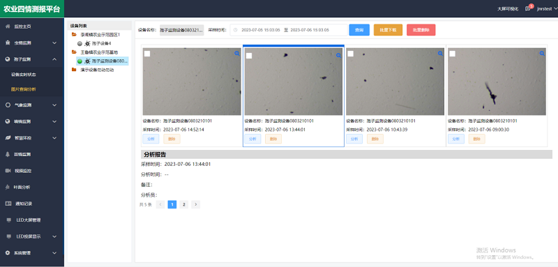 ② 采用云服務器技術,用戶可在云平臺,實現(xian)對(dui)病(bing)菌孢(bao)子(zi)圖片(pian)的(de)人(ren)工(gong)統計(ji)與孢(bao)子(zi)種類AI自動分析,實時人(ren)工(gong)遠程查看確認,縮短了預測(ce)預報周期(qi)。