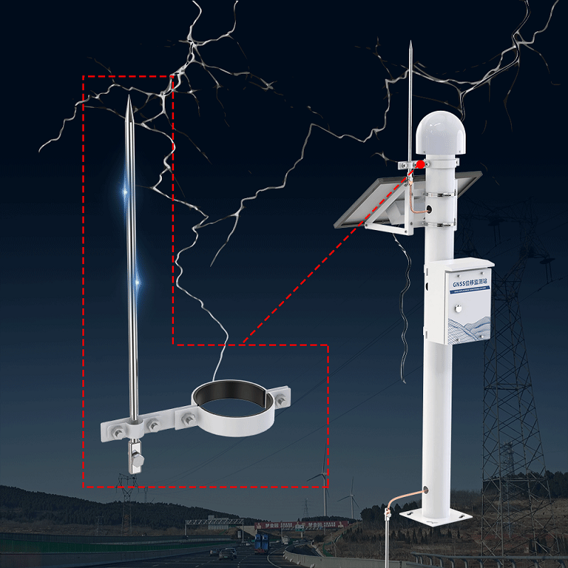 ④ 由于GNSS位移(yi)監測(ce)站其金(jin)屬構件和高靈敏度天線(xian)極易成(cheng)(cheng)為雷(lei)(lei)擊(ji)目(mu)標(biao),因(yin)此,山東仁(ren)科工程師還為GNSS位移(yi)監測(ce)站加(jia)裝了避雷(lei)(lei)針。避雷(lei)(lei)針通過(guo)尖端(duan)放電(dian)效應(ying)主(zhu)動引(yin)導(dao)雷(lei)(lei)電(dian)流(liu),結合埋設的(de)接地網形成(cheng)(cheng)低阻抗泄放通道,可(ke)將數(shu)萬安培的(de)瞬時電(dian)流(liu)導(dao)入地下,有效避免雷(lei)(lei)電(dian)直(zhi)擊(ji)導(dao)致的(de)主(zhu)控模塊燒毀、天線(xian)接收器損毀等(deng)硬(ying)件故障,同時抑制感應(ying)雷(lei)(lei)產生的(de)電(dian)磁脈(mo)沖對數(shu)據(ju)采集模塊的(de)干(gan)擾,確保位移(yi)監測(ce)數(shu)據(ju)連(lian)續(xu)性不(bu)受(shou)雷(lei)(lei)雨天氣影(ying)響。