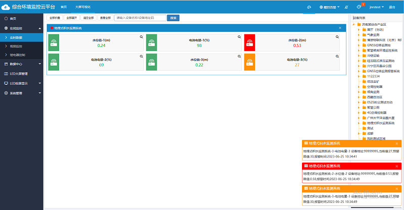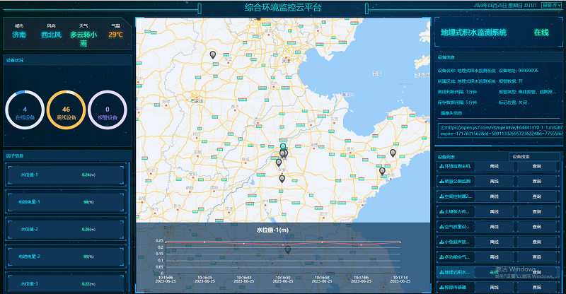 無論選擇哪種(zhong)積(ji)水監(jian)測(ce)設(she)備,測(ce)量到的水位(wei)信(xin)息(xi)都(dou)可通過遙(yao)測(ce)終端上傳至環境(jing)(jing)監(jian)控云(yun)平臺。環境(jing)(jing)監(jian)控云(yun)平臺是(shi)我公(gong)司免費回饋給(gei)用戶的綜合性服務平臺,平臺擁有(you)查看實時和報警數據、導出(chu)歷史數據、視頻監(jian)控/視頻抓(zhua)拍(pai)、地圖(tu)查看、賬號分級(ji)、手(shou)動/定時/自動控制等功能,并且(qie)平臺完全中性,支持二次開(kai)發。