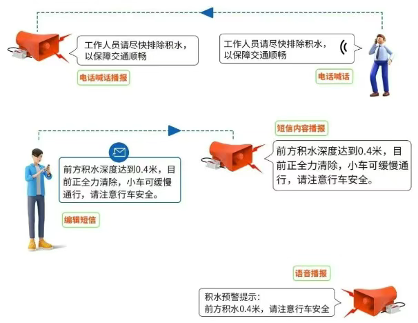 積水監測(ce)站可外接語音報警(jing)器(qi)及光(guang)報警(jing)器(qi),當積水測(ce)點監測(ce)到的(de)數據(ju)超(chao)限時(shi),光(guang)報警(jing)器(qi)會同步閃爍,警(jing)示來往(wang)路人(ren),語音報警(jing)器(qi)也會同步播報。