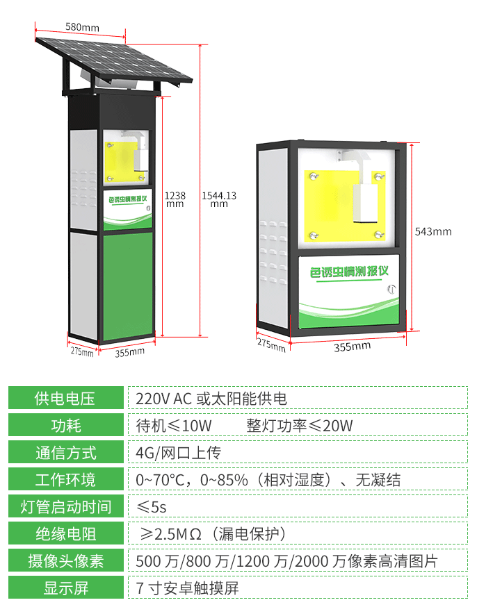 色(se)誘蟲(chong)情(qing)測報儀(yi)支持(chi)市電(dian)和太陽能兩種供(gong)(gong)電(dian)方(fang)(fang)式。市電(dian)供(gong)(gong)電(dian)模式適(shi)合在(zai)電(dian)力(li)基礎設施完善的區(qu)域使用,能夠提供(gong)(gong)穩定持(chi)續的電(dian)力(li)保(bao)障。而太陽能供(gong)(gong)電(dian)模式則專門為電(dian)網覆蓋(gai)不足的偏遠(yuan)地(di)區(qu)設計,確(que)保(bao)設備在(zai)無市電(dian)環境下也能正常(chang)工作。用戶可以根據實際安裝地(di)點的電(dian)力(li)條件,靈(ling)活選擇適(shi)合的供(gong)(gong)電(dian)方(fang)(fang)式。