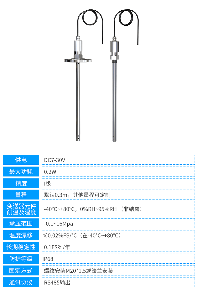 電(dian)容式(shi)液(ye)(ye)位(wei)(wei)計(ji)采用(yong)(yong)360°全防(fang)護(hu)設計(ji),探頭防(fang)護(hu)外殼(ke)均采用(yong)(yong)不(bu)銹(xiu)鋼材質(zhi),防(fang)水等(deng)級達到IP68,適用(yong)(yong)于測量所(suo)有(you)與接觸部分(fen)材質(zhi)相兼容的液(ye)(ye)體介質(zhi)(包括汽油(you)、柴(chai)油(you)、液(ye)(ye)壓油(you)等(deng)油(you)位(wei)(wei)測量及弱腐蝕性液(ye)(ye)體的液(ye)(ye)位(wei)(wei)測量),能夠(gou)在各(ge)類(lei)惡劣(lie)工況下為用(yong)(yong)戶提供(gong)穩定可靠的液(ye)(ye)位(wei)(wei)監測服務(wu)。
