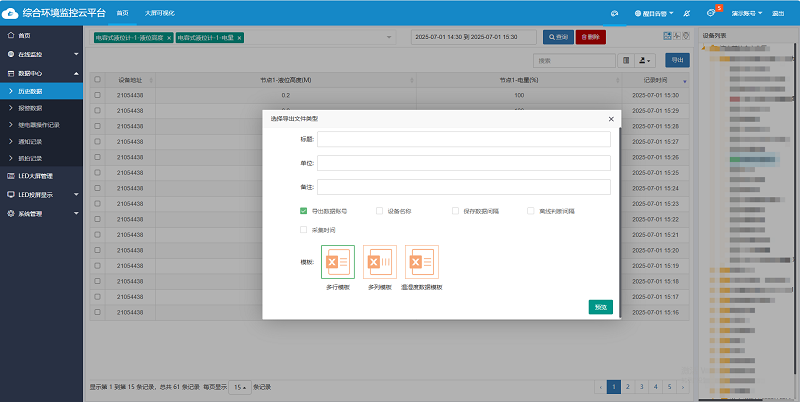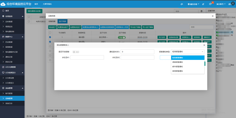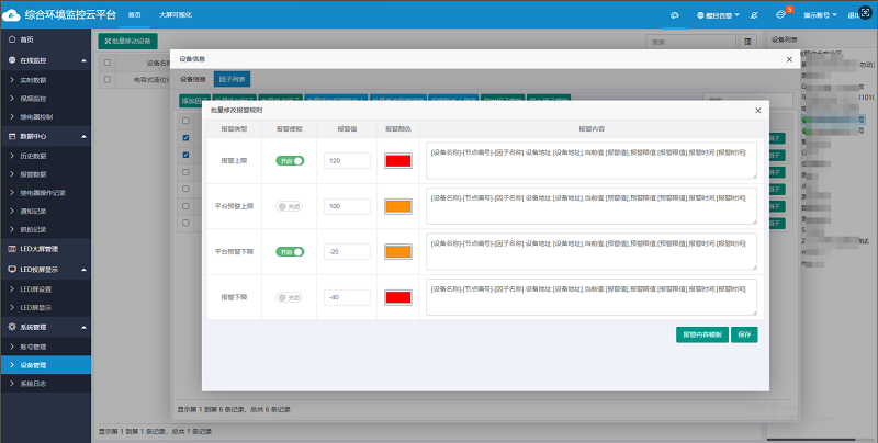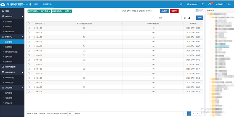 用(yong)戶可在平(ping)臺中設置報警值,當液位(wei)異常(如過高或過低(di))時(shi),平(ping)臺會(hui)自動發送報警信息(平(ping)臺數據變(bian)紅、彈窗、語音(yin)、短(duan)信、郵件)提醒用(yong)戶及時(shi)處理(li)。