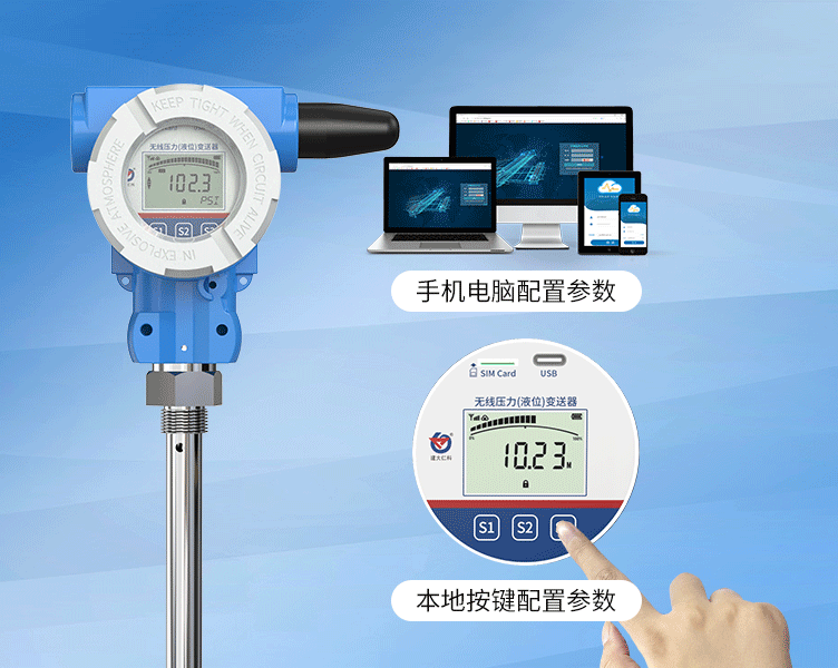 電(dian)容式液位計既支(zhi)持通(tong)(tong)過手機或電(dian)腦終端(duan)進行(xing)參數(shu)配(pei)置(zhi),也支(zhi)持通(tong)(tong)過本(ben)地(di)按(an)鍵(jian)進行(xing)參數(shu)配(pei)置(zhi),大大提升了(le)設備(bei)的可維護性和(he)使用效率,實現了(le)設備(bei)管(guan)理的智能化(hua)與便捷化(hua)。
