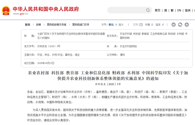 為深入貫徹落實黨中央、國(guo)務院關(guan)于(yu)科技(ji)(ji)(ji)創(chuang)新(xin)(xin)的重大決(jue)策部(bu)(bu)署(shu),進一步全(quan)面深化(hua)農(nong)業(ye)(ye)科技(ji)(ji)(ji)體(ti)(ti)制改革,發揮(hui)新(xin)(xin)型舉國(guo)體(ti)(ti)制優勢,加(jia)快實現(xian)高水平(ping)農(nong)業(ye)(ye)科技(ji)(ji)(ji)自(zi)立自(zi)強,為農(nong)業(ye)(ye)強國(guo)建設提(ti)供強有(you)力的支撐,國(guo)家印發了《關(guan)于(yu)加(jia)快提(ti)升農(nong)業(ye)(ye)科技(ji)(ji)(ji)創(chuang)新(xin)(xin)體(ti)(ti)系整體(ti)(ti)效(xiao)能的實施意見》,系統部(bu)(bu)署(shu)了強化(hua)企業(ye)(ye)科技(ji)(ji)(ji)創(chuang)新(xin)(xin)主體(ti)(ti)地位,培(pei)育(yu)壯(zhuang)大農(nong)業(ye)(ye)科技(ji)(ji)(ji)領軍企業(ye)(ye)的戰略舉措。