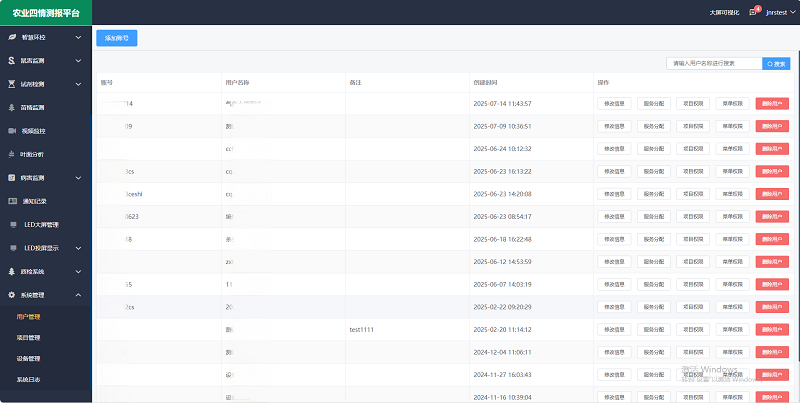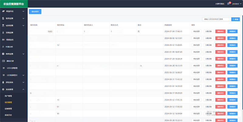 系統(tong)管(guan)理(li)中具(ju)有用(yong)戶(hu)管(guan)理(li)、項目管(guan)理(li)、設(she)備(bei)管(guan)理(li)、系統(tong)日志等多個功能,管(guan)理(li)員可(ke)根(gen)據實際使用(yong)需求增/減子(zi)賬號(hao),進行數(shu)據共享;修改設(she)備(bei)信(xin)息;查看各個人員賬號(hao)的登錄(lu)、操作(zuo)情況,以保障項目的正常運行。