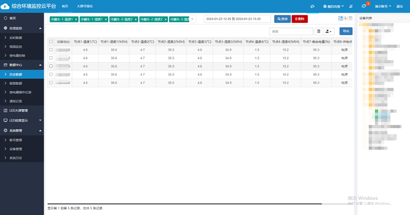 通過綜合環(huan)境(jing)云(yun)平臺用戶(hu)可(ke)遠(yuan)程(cheng)查看環(huan)境(jing)狀(zhuang)態,實現(xian)對(dui)多個冷鏈節點的集中監控(kong)。云(yun)平臺不僅(jin)能對(dui)數據(ju)(ju)進行(xing)實時(shi)分(fen)析,還能存儲歷史(shi)數據(ju)(ju)并生成趨勢報(bao)表,幫(bang)助(zhu)用戶(hu)總結(jie)溫濕度、氣體變化規(gui)律,優化冷鏈流程(cheng)。當系統(tong)發(fa)現(xian)溫濕度異常時(shi),可(ke)自動向用戶(hu)發(fa)出警報(bao),便于及時(shi)采取調整措施。