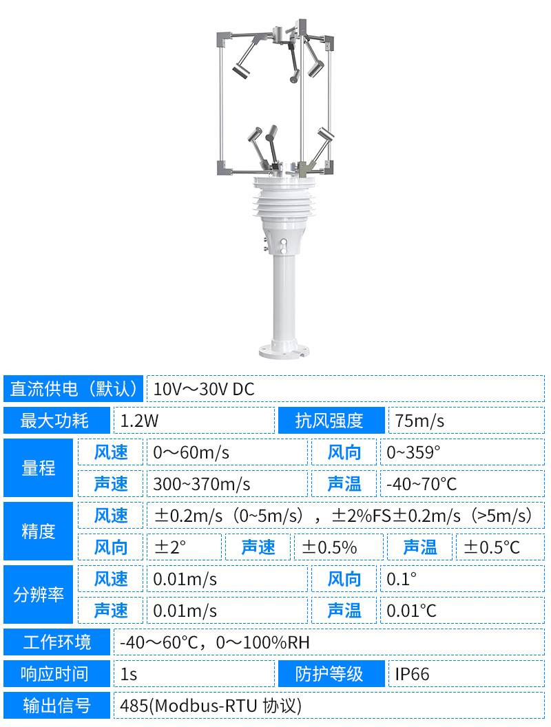 這些局限性(xing)導致機(ji)械式風(feng)(feng)速風(feng)(feng)向(xiang)傳感器僅能(neng)適用(yong)于常(chang)規(二維(wei)(wei))氣象(xiang)監測,而在通量(liang)觀測、風(feng)(feng)能(neng)高(gao)級評估及科學研究等領域則無法滿(man)足要求。為(wei)此,山(shan)東仁科推出了基于超聲波原理的超聲波三維(wei)(wei)風(feng)(feng)速風(feng)(feng)向(xiang)變送器。這款專業的測風(feng)(feng)設(she)備能(neng)夠提供完整的三維(wei)(wei)風(feng)(feng)矢量(liang)信息,具(ju)備其他類型設(she)備無法替代的獨(du)特(te)優勢(shi)。
