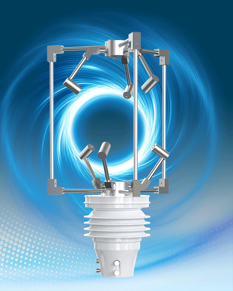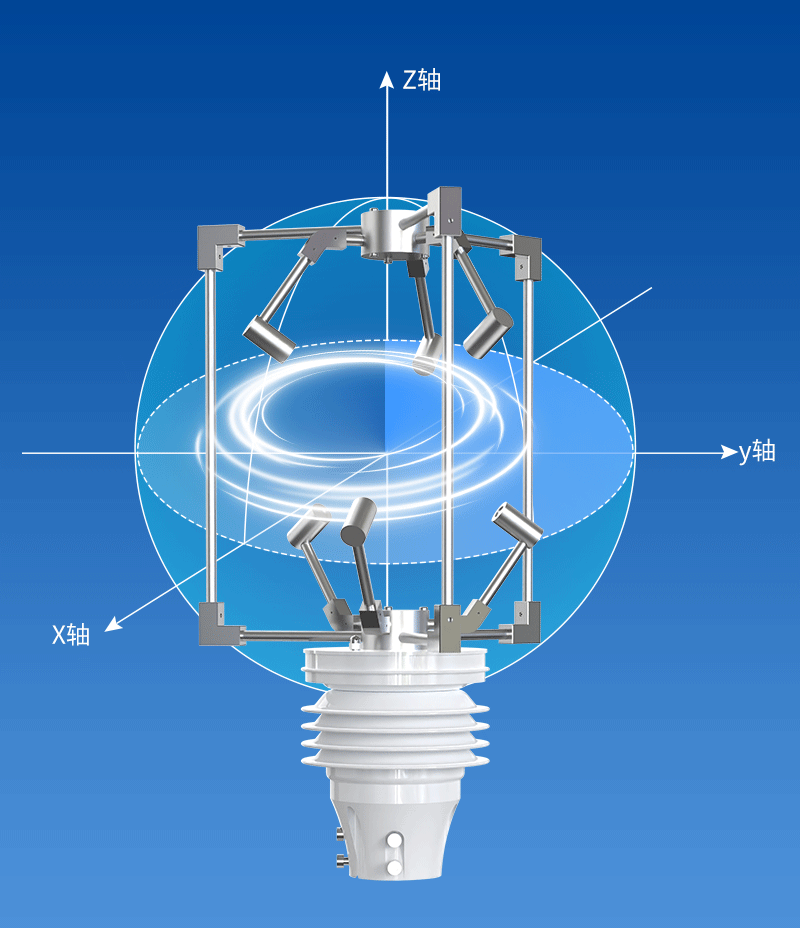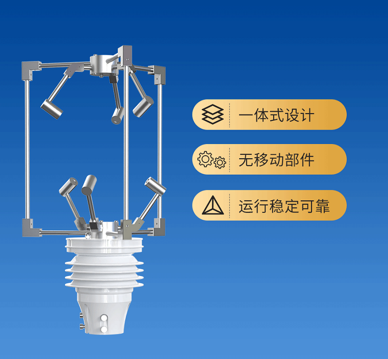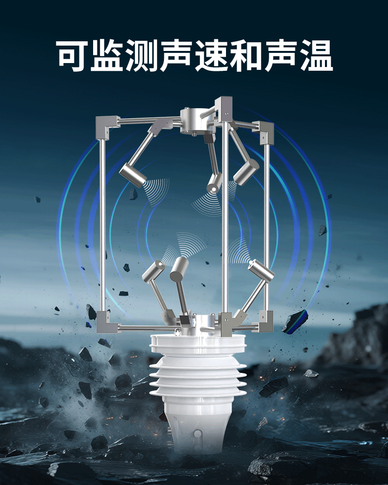 為實(shi)現三(san)(san)維空(kong)間(jian)的全(quan)面測(ce)量(liang)(liang),設(she)(she)備采(cai)用三(san)(san)根(gen)支(zhi)撐桿(gan)結構,可以有效減少風(feng)阻,使測(ce)試數據(ju)(ju)更精準;搭載六個超聲(sheng)(sheng)波探頭,這些探頭按特定結構分布在三(san)(san)維平面內,分別對應 X、Y、Z 三(san)(san)個空(kong)間(jian)坐標軸方向(xiang),探頭在三(san)(san)維平面內循環發送和(he)接收超聲(sheng)(sheng)波,通過超聲(sheng)(sheng)波在空(kong)氣中(zhong)傳(chuan)播(bo)的時(shi)差(cha)來測(ce)量(liang)(liang)風(feng)速(su)和(he)風(feng)向(xiang)。在測(ce)量(liang)(liang)風(feng)速(su)風(feng)向(xiang)的同時(shi),設(she)(she)備還能通過精確計算超聲(sheng)(sheng)波傳(chuan)播(bo)時(shi)間(jian)直接得到聲(sheng)(sheng)速(su)值(zhi),并據(ju)(ju)此推(tui)導出聲(sheng)(sheng)溫數據(ju)(ju),可廣(guang)泛應用于氣象觀測(ce)、風(feng)電(dian)運維、環境監測(ce)等對數據(ju)(ju)精度和(he)實(shi)時(shi)性要(yao)求極高的場景。