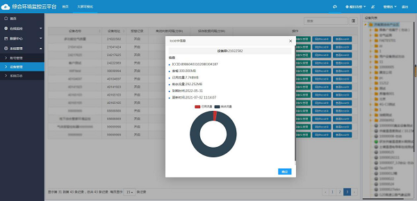 實(shi)時(shi)(shi)獲取現場4G型物聯網(wang)設(she)備的卡(ka)號,自動(dong)分(fen)析卡(ka)號剩余流量,自動(dong)分(fen)析,到期(qi)時(shi)(shi)間預警提醒,讓項目(mu)管(guan)理(li)人員及時(shi)(shi)充值,防止流量卡(ka)到期(qi)運營商銷號造成項目(mu)停(ting)滯(zhi)。