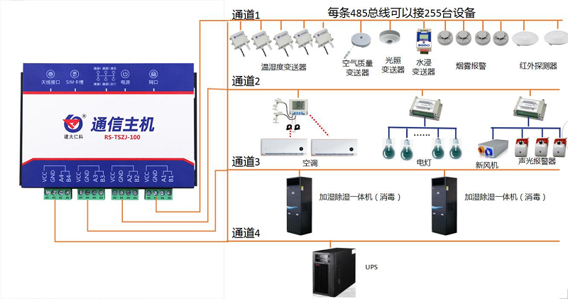 動環通信主(zhu)機主(zhu)要用(yong)于平臺與傳(chuan)感器設(she)備(bei)之間的通信連接(jie),可(ke)(ke)網(wang)口(kou)或4G上傳(chuan)數據,供電10~30V,4路(lu)下行485接(jie)口(kou),每路(lu)接(jie)口(kou)可(ke)(ke)單獨設(she)置(zhi)不同的波特率(lv),最多可(ke)(ke)接(jie)255臺485設(she)備(bei),長通信距離≤1500 米。
