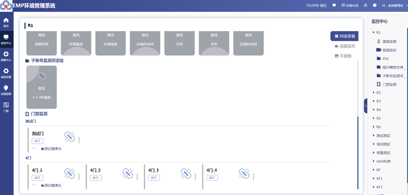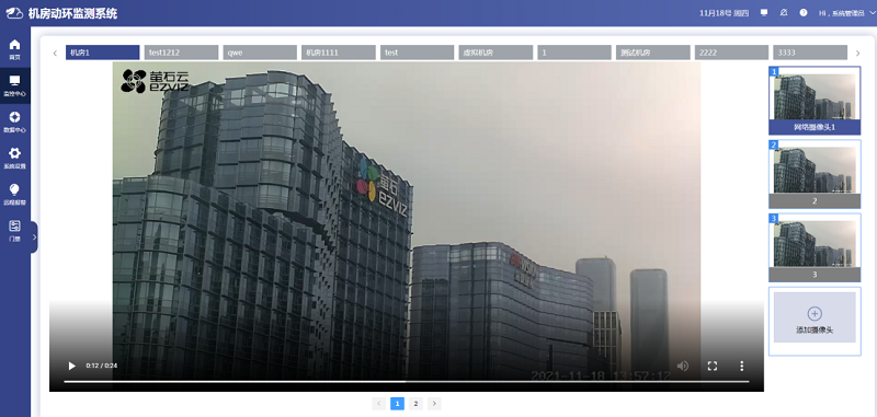 · 視頻(pin)監(jian)控(kong)監(jian)測項可查看(kan)機房下的攝像頭,也可添加攝像頭。