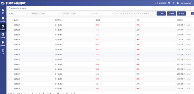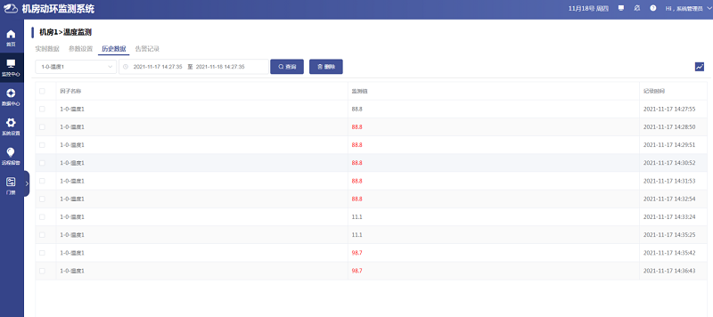· 查詢(xun)歷史數據時,機房不可多選,監(jian)測項(xiang)和因子都(dou)可選擇多個。