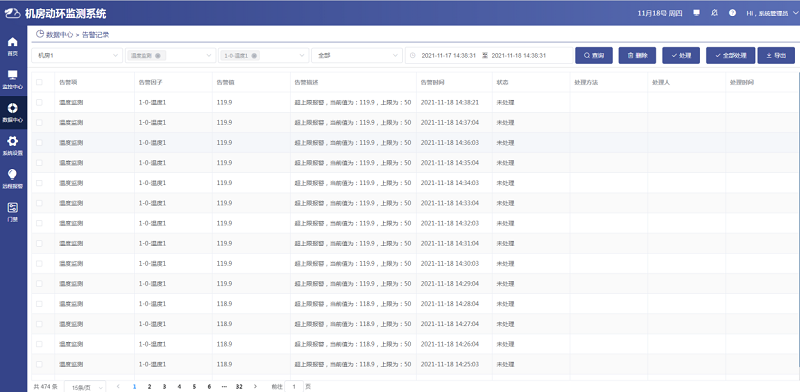 · 查(cha)詢告(gao)警記(ji)錄時,機房不(bu)可多選,監測項和因子都可多選。還可單獨查(cha)詢已(yi)處理和未處理的記(ji)錄。
