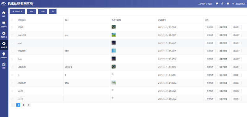 · 機(ji)房(fang)配置頁(ye)面可添加、修改以及(ji)刪(shan)除機(ji)房(fang)。