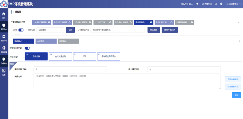 · 配置完成后(hou)點擊“點擊測試(shi)”按(an)鈕(niu)可測試(shi)廣播報警器是否配置成功。