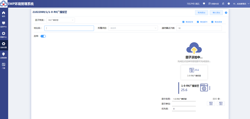 添(tian)加因(yin)子時選擇RK廣播報警(jing)可添(tian)加廣播報警(jing)器(qi),該因(yin)子占(zhan)用單獨的一個通道。