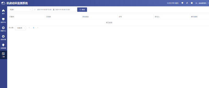 · 門(men)禁(jin)日志可(ke)根據(ju)機(ji)房查詢該(gai)機(ji)房下的(de)門(men)禁(jin)日志。