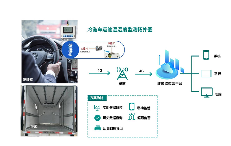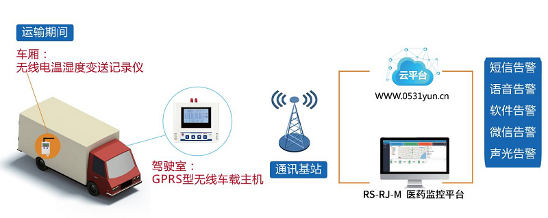 山東仁科根據冷鏈運輸中溫濕度的實際情況設計出一套專門應用于冷鏈運輸溫濕度監測的解決方案,該方案由冷鏈保溫箱和環境監控云平臺組成。可以對藥品運輸過程中的溫濕度數據進行不間斷監測和記錄,數據定時自動上傳至電腦軟件端顯示、存儲,超限及時告警。有效防范儲存過程中可能發生的影響藥品質量安全的風險,確保藥品質量安全。