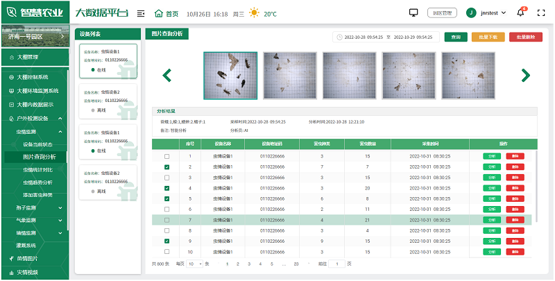 調用(yong)百度AI識別(bie),自動識別(bie)害蟲種類(lei)和數(shu)量(liang),進行統(tong)計(ji)和趨勢分析,提供精準的(de)蟲害數(shu)據。