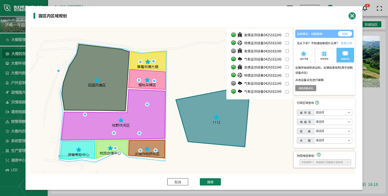 在智慧農(nong)業大數(shu)據平(ping)臺上(shang),園區(qu)規(gui)劃(hua)模塊提供了科學(xue)的(de)決(jue)策支持工具。通(tong)過整合地理信(xin)息系統(GIS)和大數(shu)據分析(xi),平(ping)臺能夠幫助農(nong)業管理者全面(mian)了解園區(qu)的(de)土地資(zi)(zi)源、氣候(hou)條件(jian)、土壤(rang)類型等關鍵(jian)信(xin)息,從(cong)而(er)進行(xing)合理的(de)種(zhong)植規(gui)劃(hua)和資(zi)(zi)源配置。