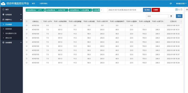 可(ke)通過系統(tong)查(cha)詢(xun)每個(ge)監(jian)測(ce)點的(de)設備信息,對設備監(jian)測(ce)數(shu)(shu)據(ju)(ju)、歷史(shi)數(shu)(shu)據(ju)(ju)進行查(cha)詢(xun)。并生成(cheng)數(shu)(shu)據(ju)(ju)曲線圖,具有單個(ge)或多(duo)(duo)個(ge)因子數(shu)(shu)據(ju)(ju)存儲/查(cha)詢(xun)/導出數(shu)(shu)據(ju)(ju)功(gong)能(neng),支持PDF、excel等(deng)多(duo)(duo)種數(shu)(shu)據(ju)(ju)格式導出,導出內容標題、使(shi)用單位名稱用戶可(ke)自定(ding)義,同時可(ke)導出數(shu)(shu)據(ju)(ju)查(cha)詢(xun)的(de)時間段、查(cha)詢(xun)數(shu)(shu)據(ju)(ju)賬號(hao)、保存數(shu)(shu)據(ju)(ju)間隔、離線判斷(duan)間隔等(deng)重要信息。